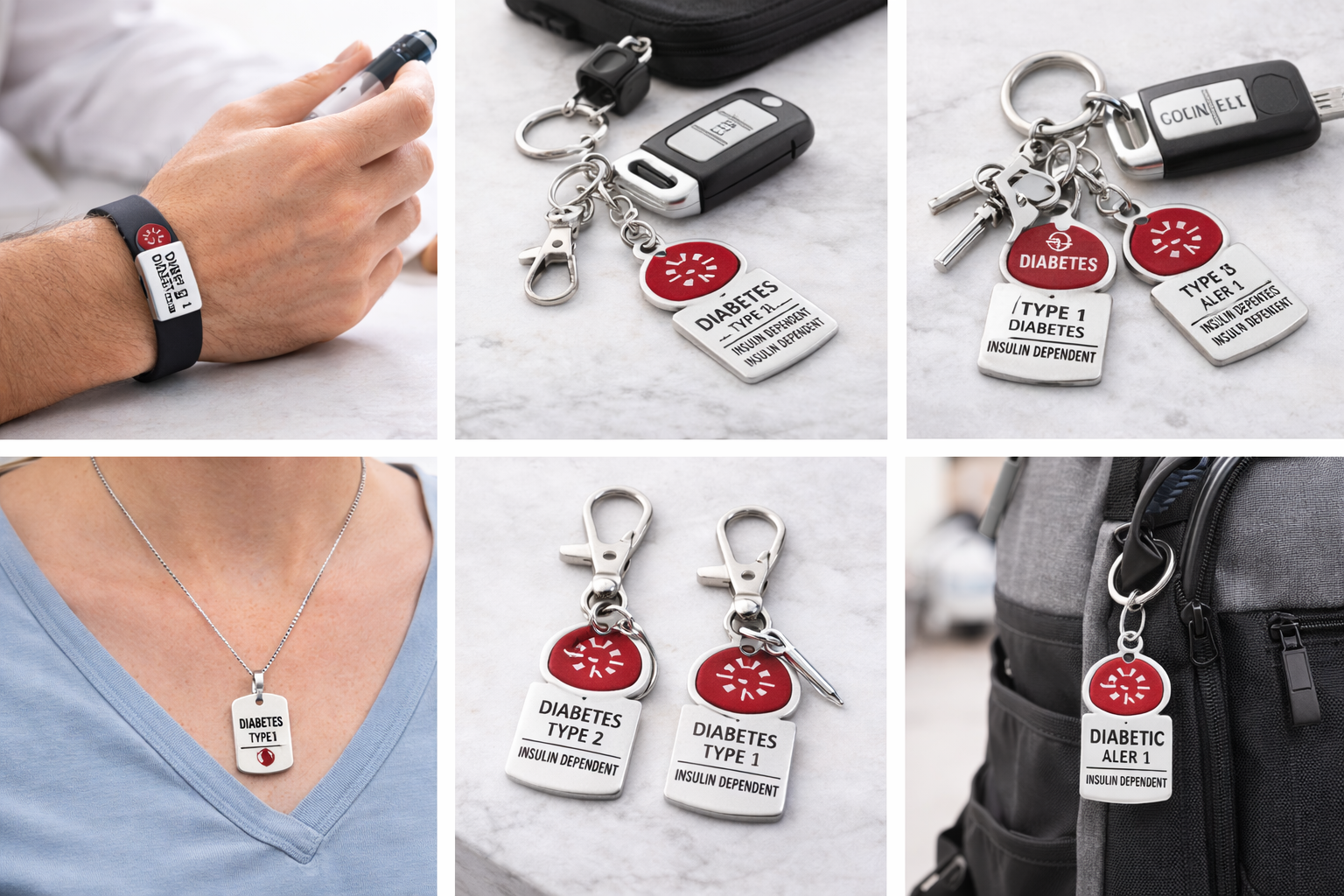 Medical alert accessories that clearly communicate your diabetic condition in emergencies. Comfortable, durable, and designed for everyday wear to give you and your loved ones peace of mind.